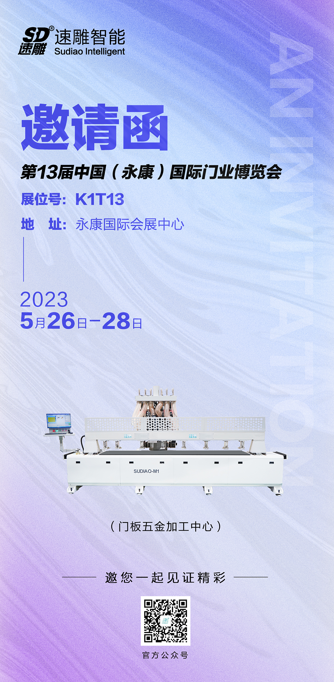 【概要描述】第13屆中國(永康)國際門業(yè)博覽會 時間:2023年5月26日-5月28日 地址:永康國際會展中心 展位號:K1T13